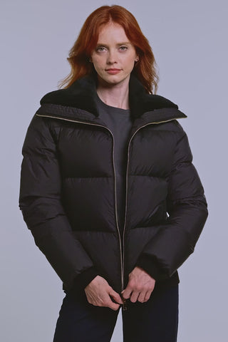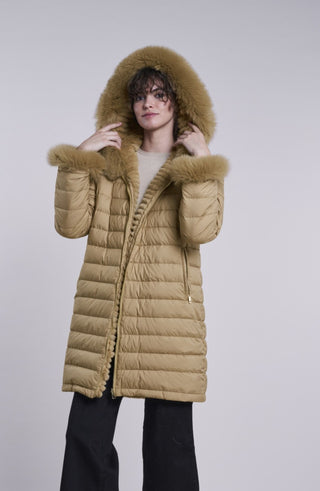 216 Down topper with genuine shearling skirt and collar Black Friday Special $390