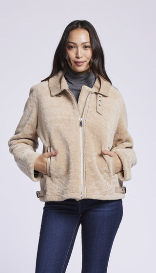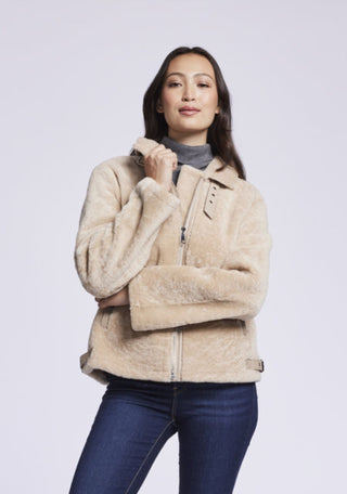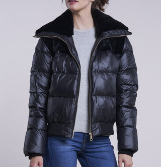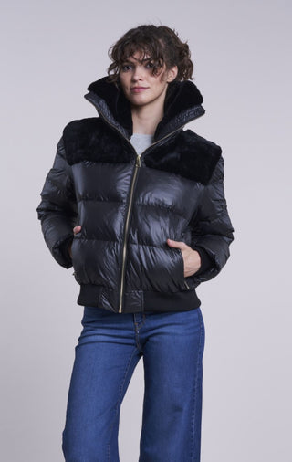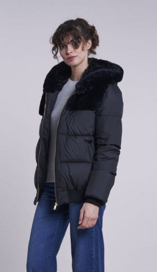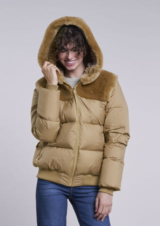 215HDC Down hooded jacket with shearling yoke Holiday Special $249