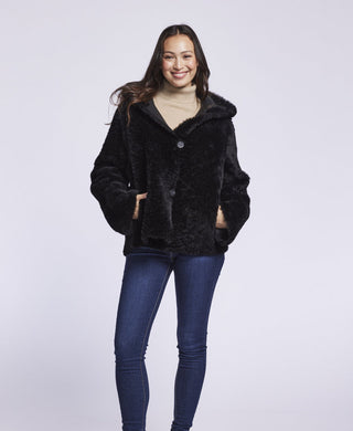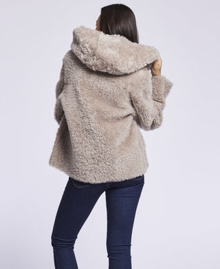 #5293HD Fitted Shearling Coat with Zip Front and Hood