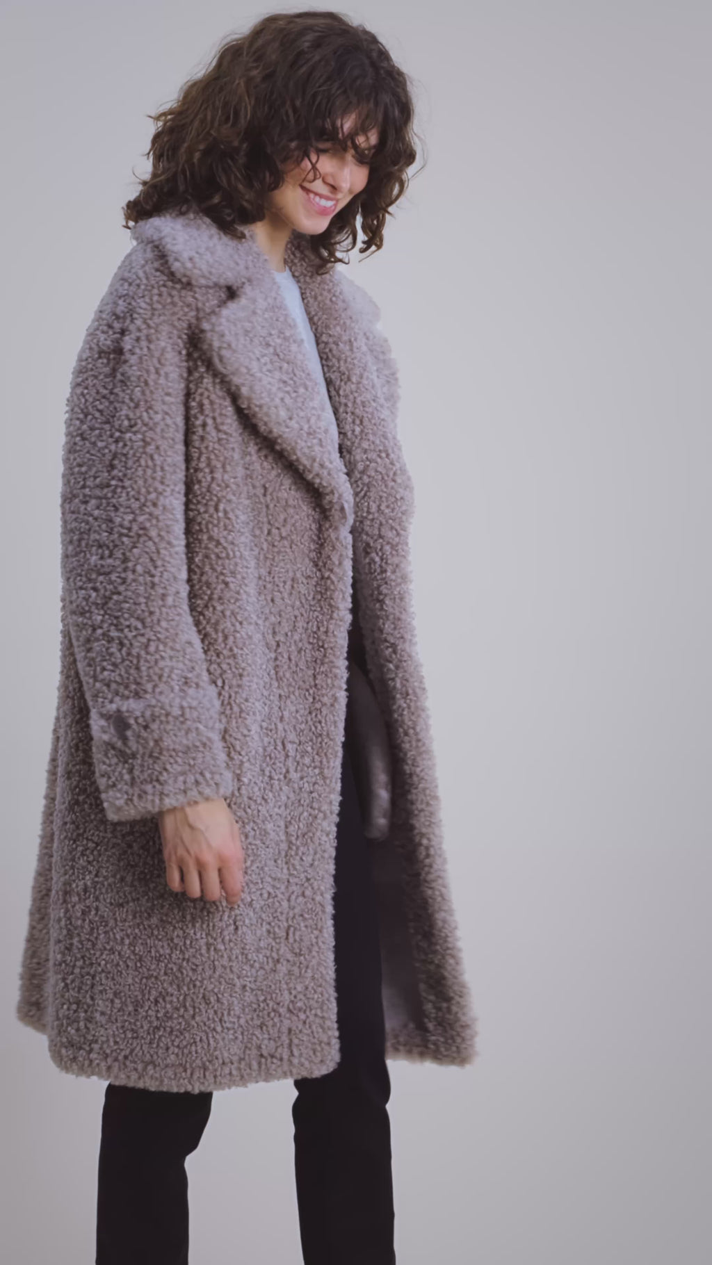 Great oversized faux fur coat. Today's look in super soft curly Faux. Oversized collar adds to the fashion and the warmth is undeniable all at a price you will love.