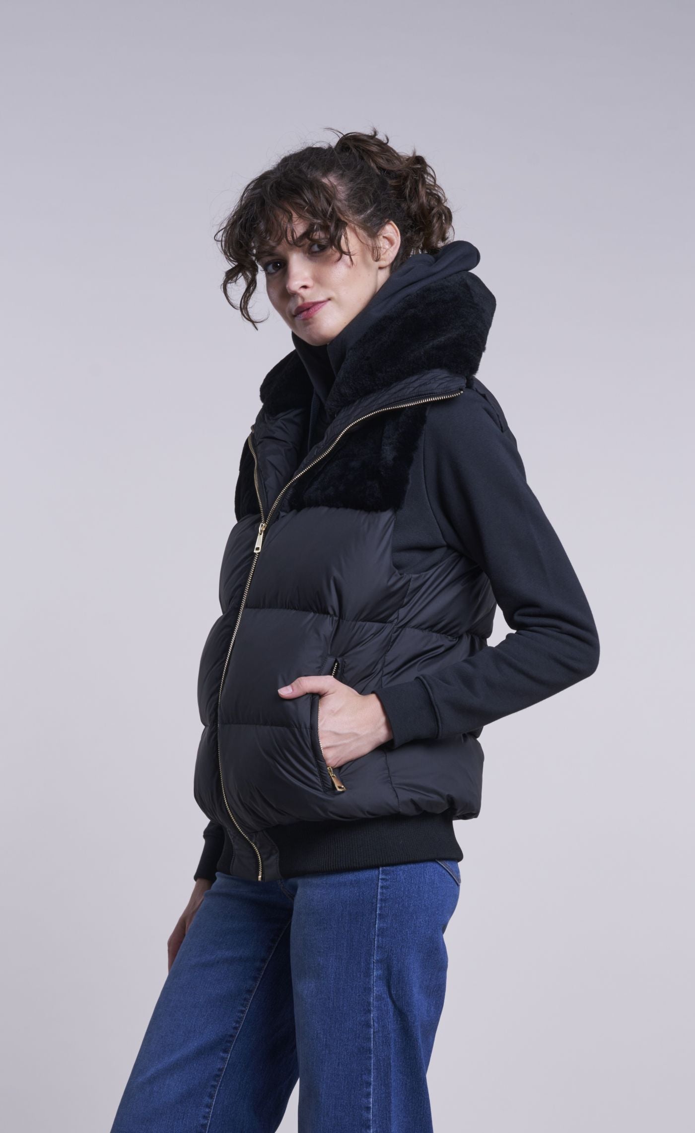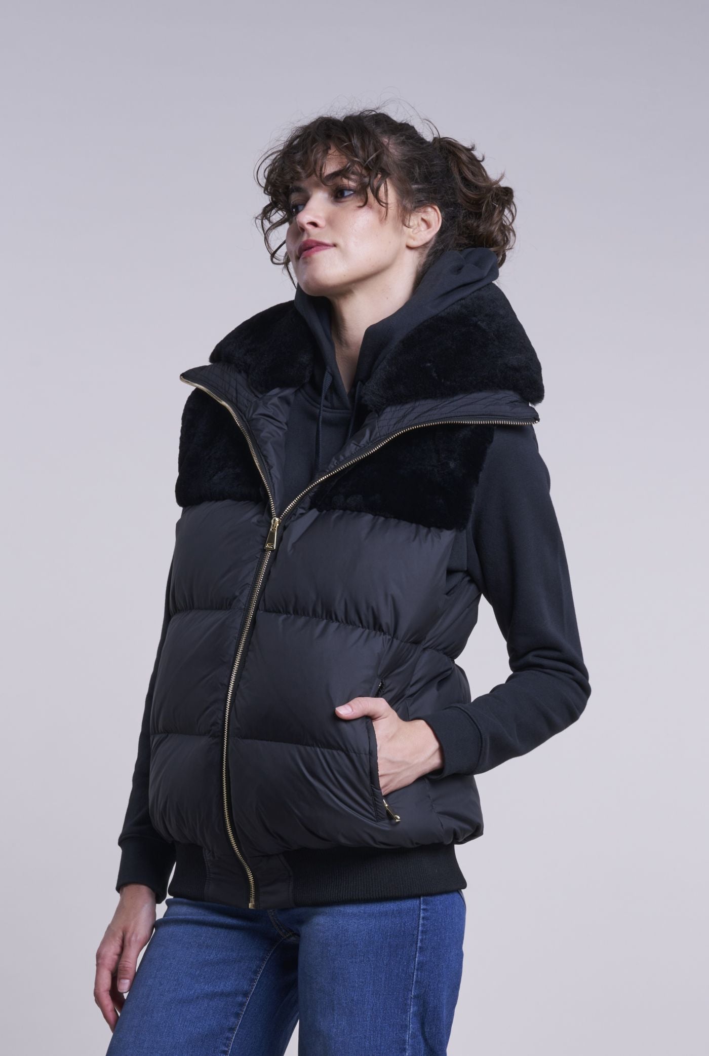 204 Down vest with shearling yoke and collar GIFT OF WARMTH $195
