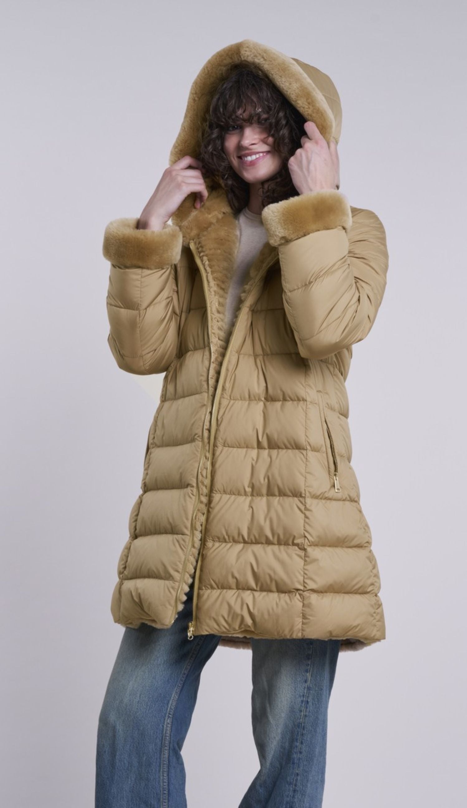 2254HDC Hooded down coat reverses to genuine shearling 1/2 PRICE GIFT OF WARMTH now $290